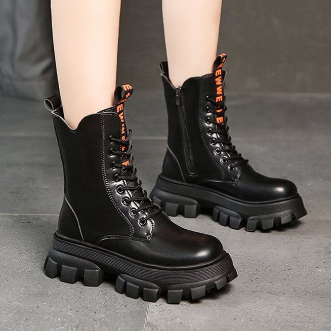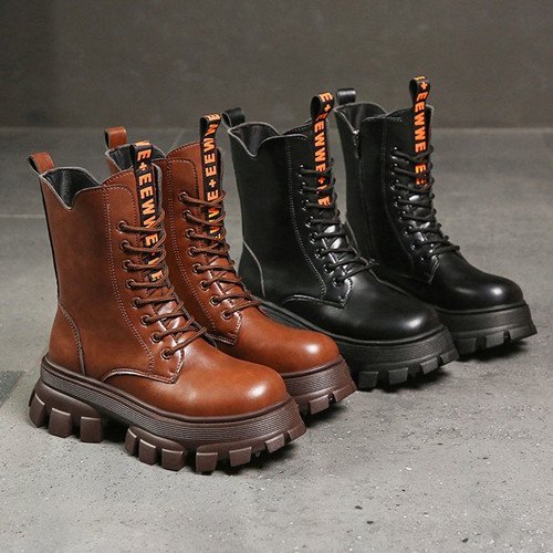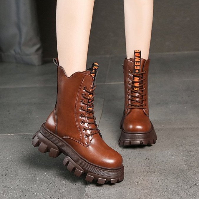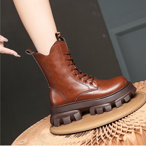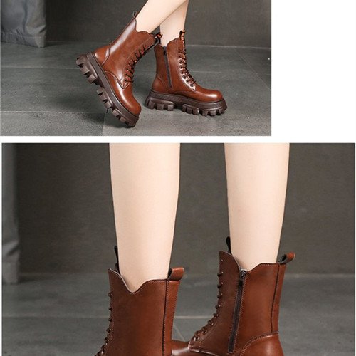 Winter Shoes Women Boots Round Toe Flats Black & Brown Leather