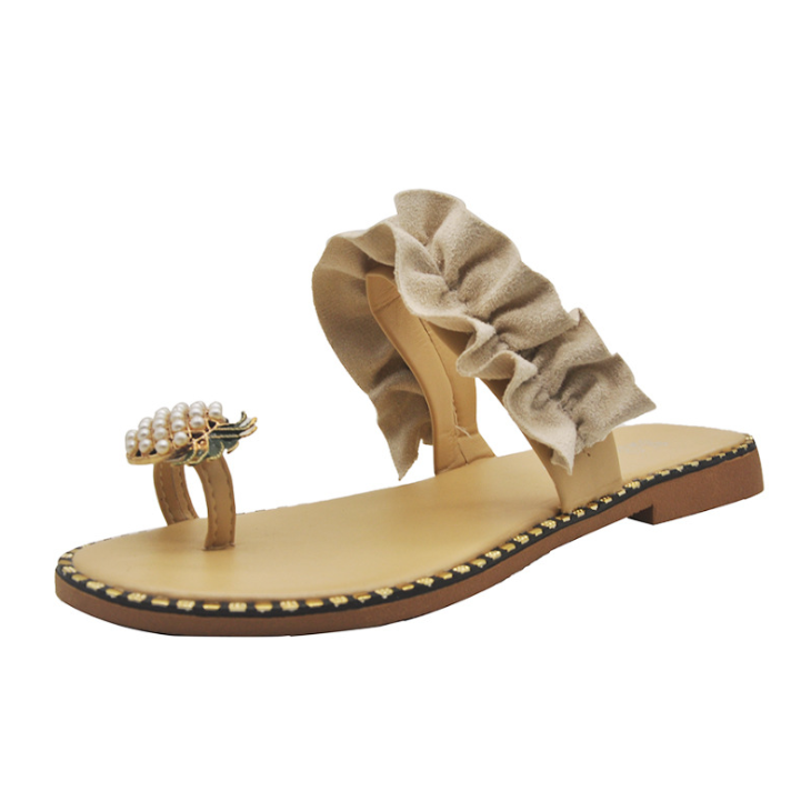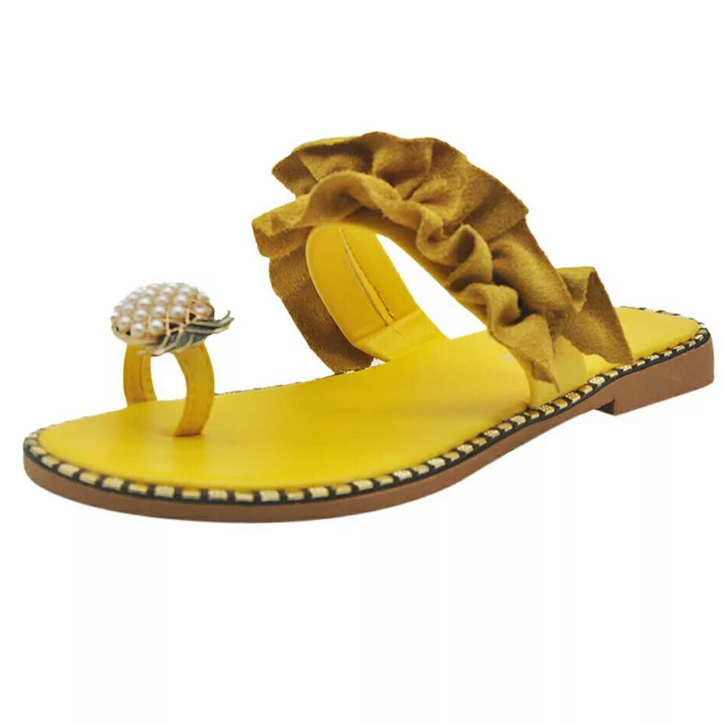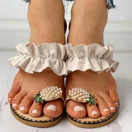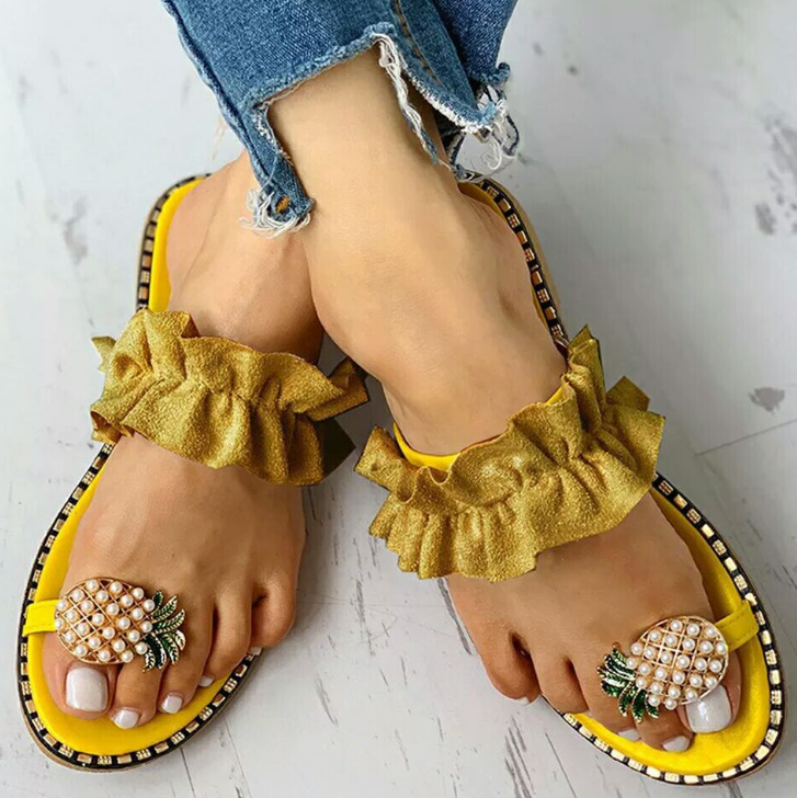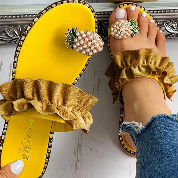 Woman Pineapple Rhinestone Ruffles Flat Heel Slipper Slide Sandals