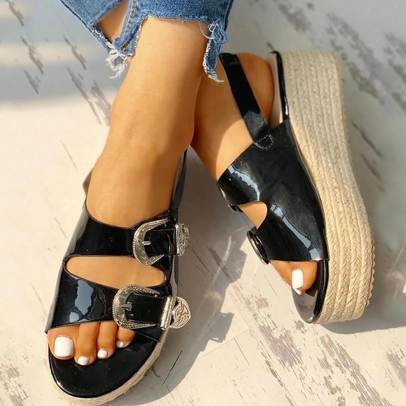 Women Simple Elegant Pu Rhinestone Elastic Band Wedge Heel Sandals