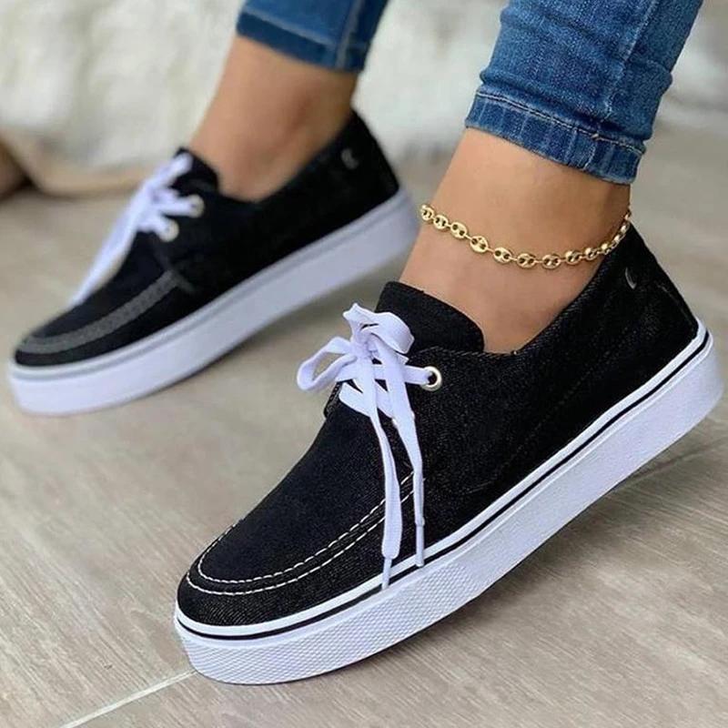 Women Casual Canvas Pure Color Lace-up Shoes