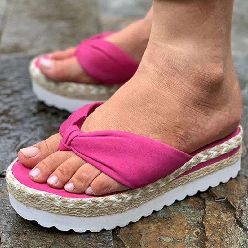 Women Casual Comfortable Cloth Flip-flop Platform Sandals Slippers