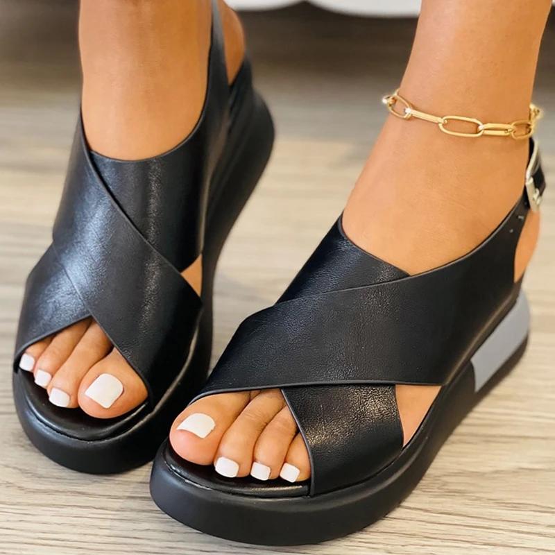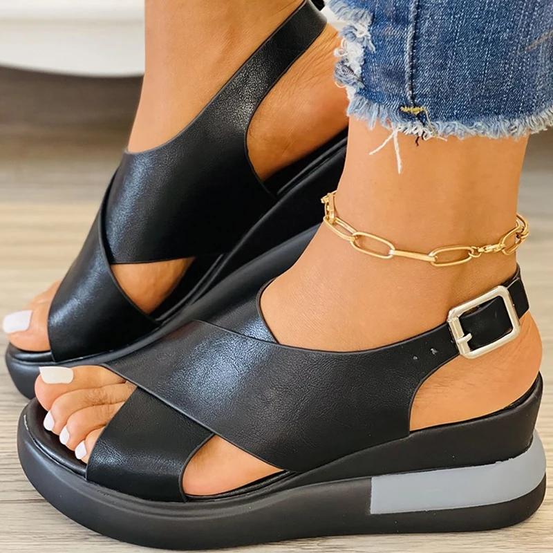 Women Casual Comfotable Pu Color-Blocking Wedge Heel Sandals
