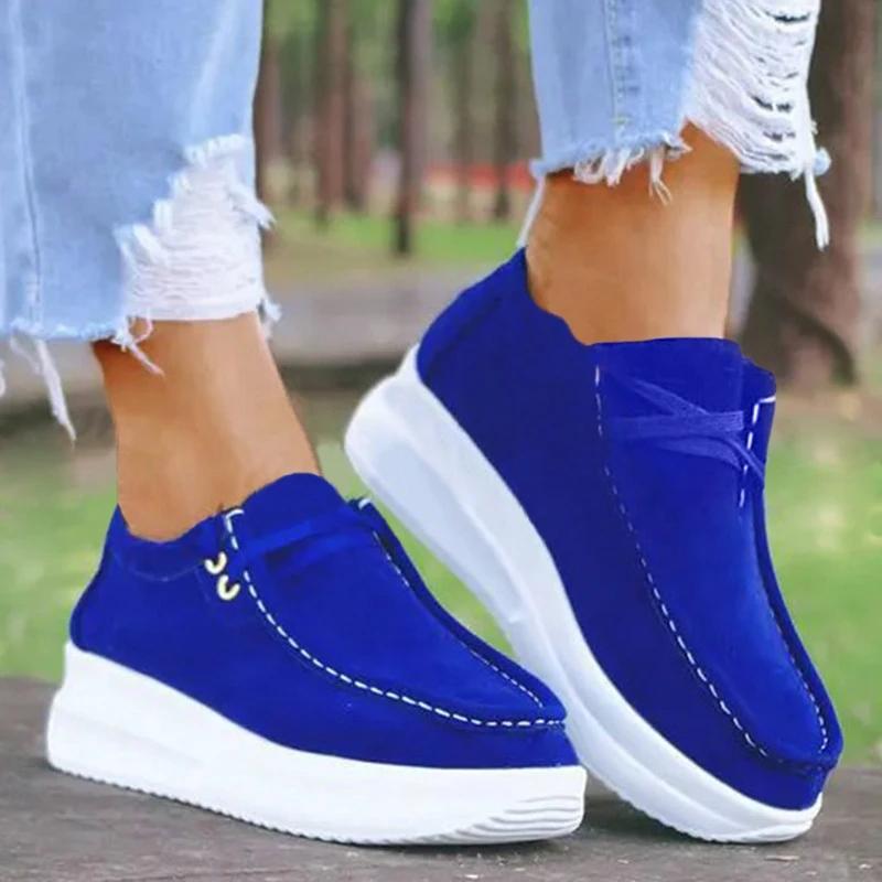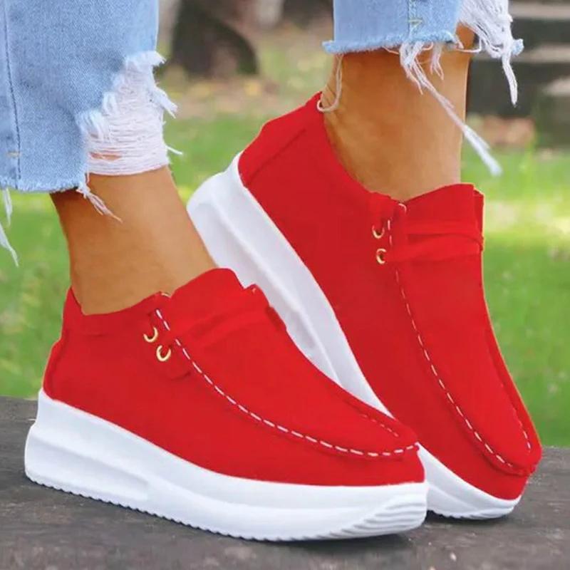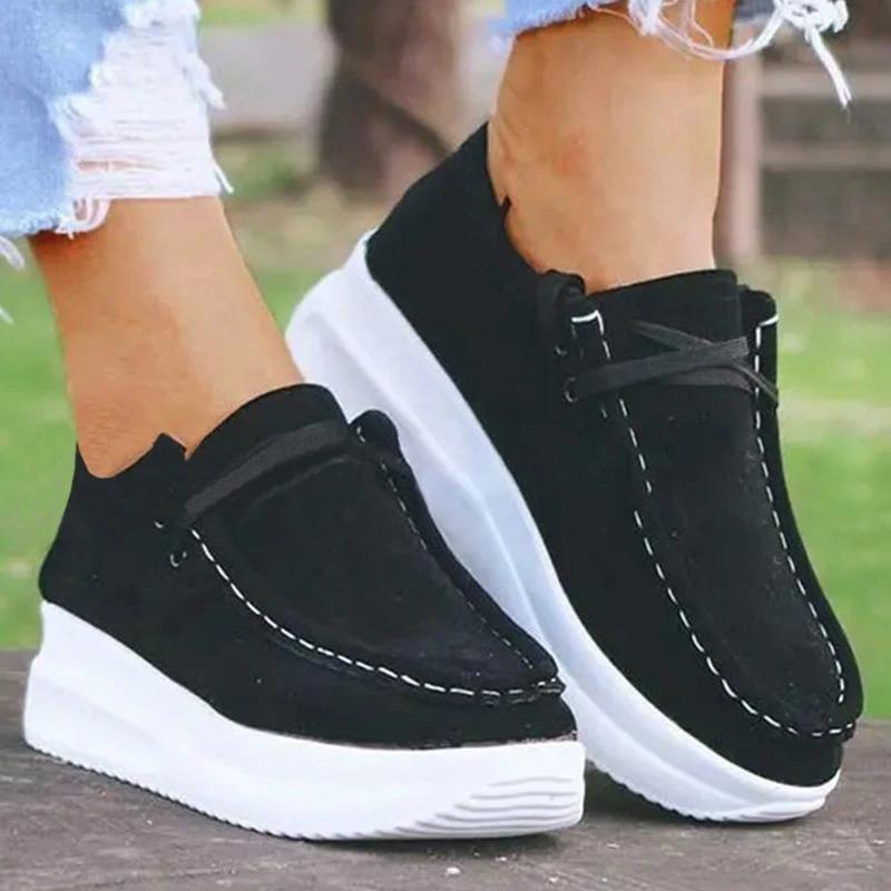 Women Casual Comfy Shearling Pure Color Lace-up Platform Loafers
