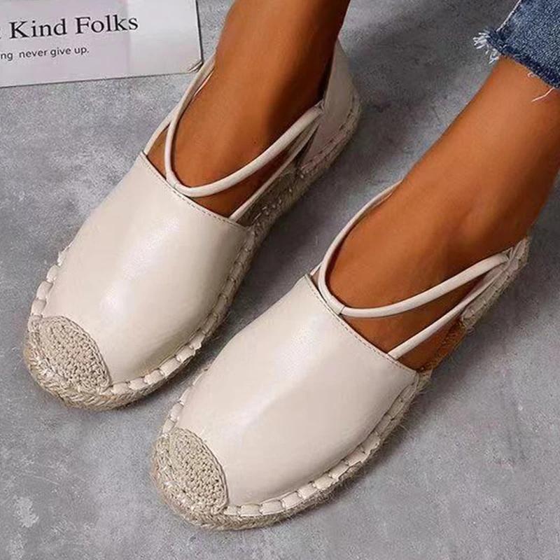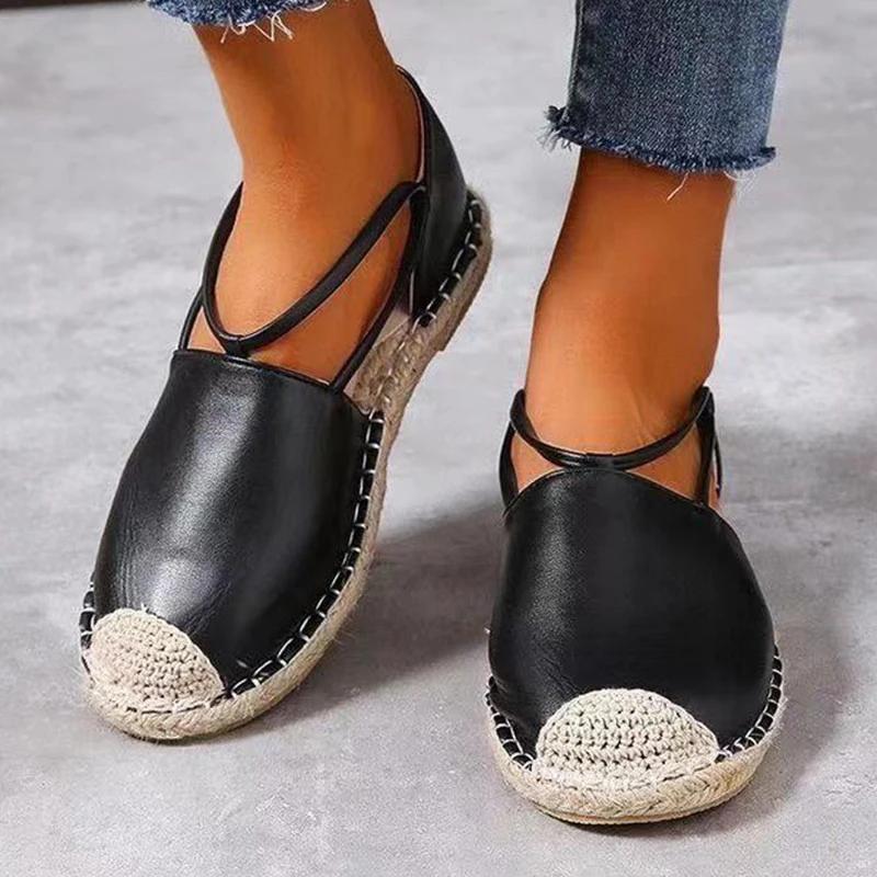 Women Casual Daily Pu Woven Pure Color Flat Sandals