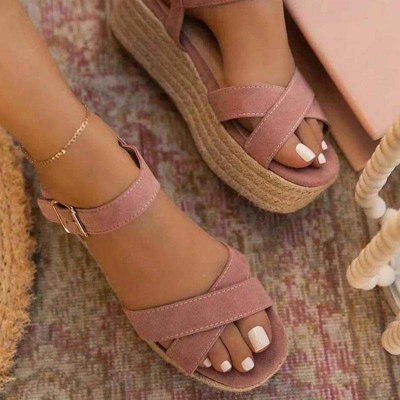 Women Casual Elegant Pu Cross-strap Adjusting Buckle Platform Sandals