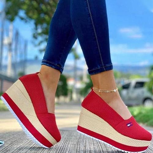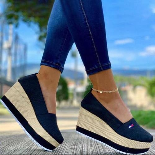 Women Casual Elegant Pu Slip On Wedge Heel Loafers