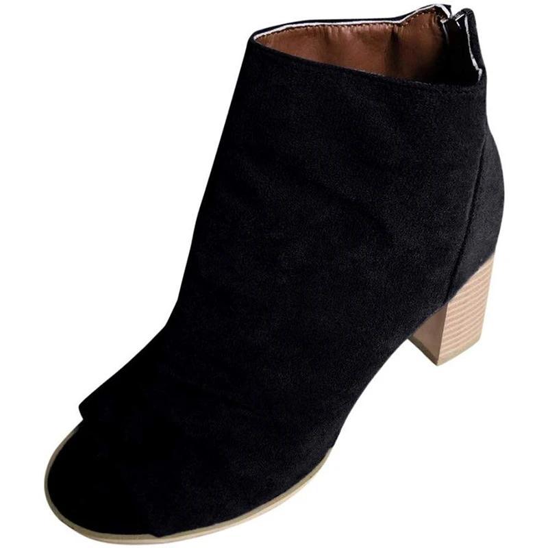 Women Casual Fashion Chunky Heel Zipper Ankle Boots