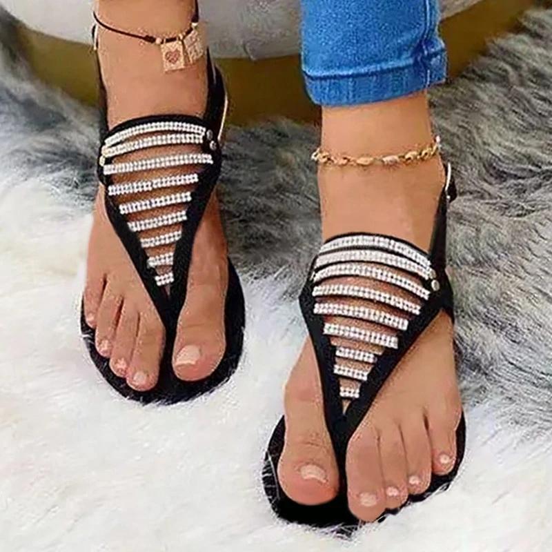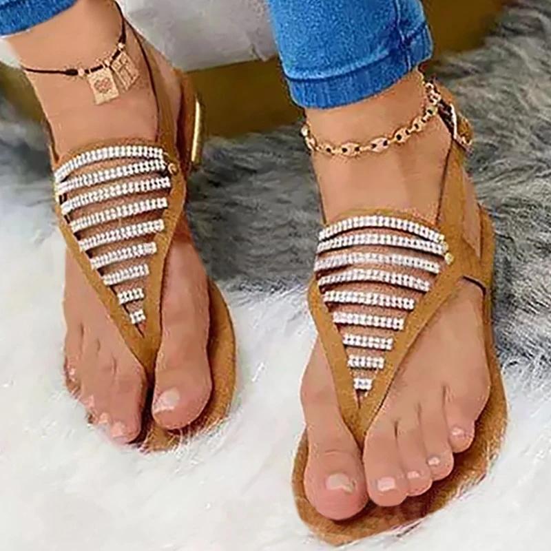 Women Casual Fashion Cloth Rhinestone Adjusting Buckle Beach Holiday Sandals