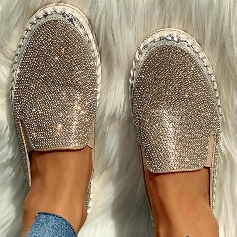Women Casual Fashion Rhinestone Slip-on Loafers