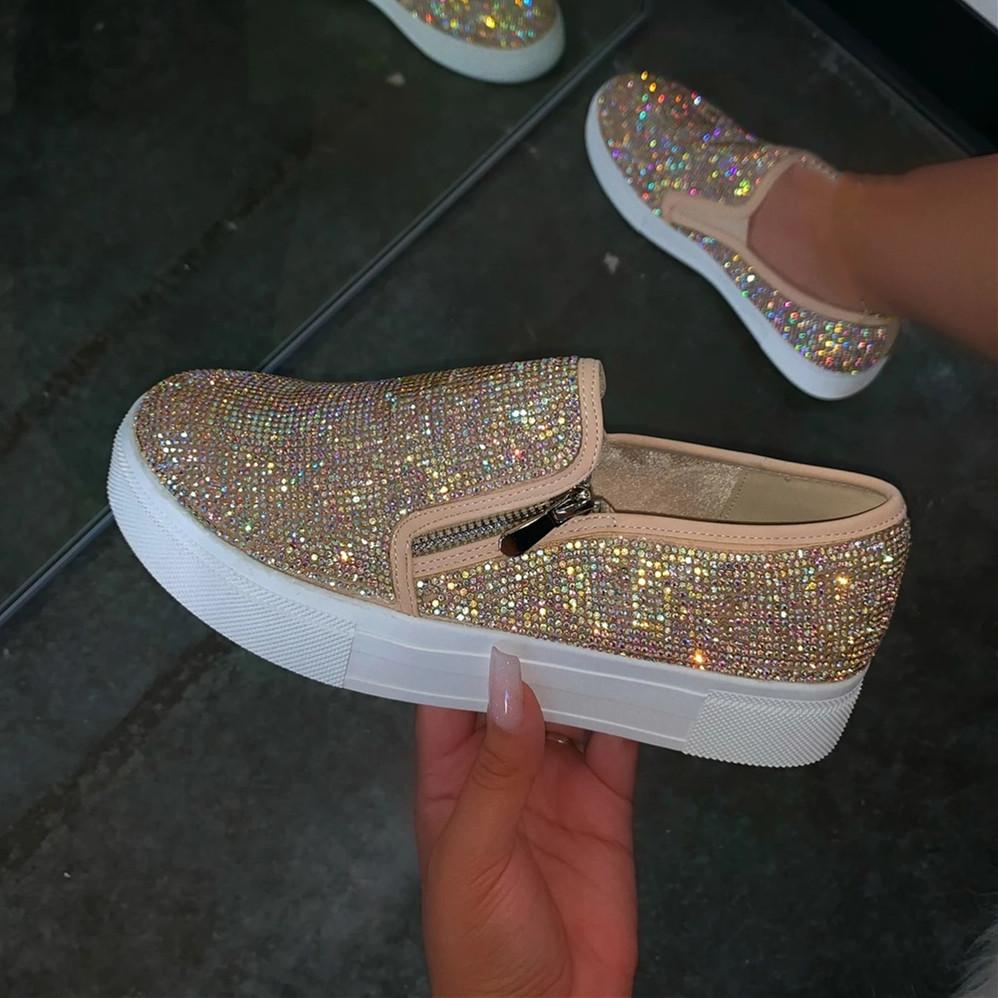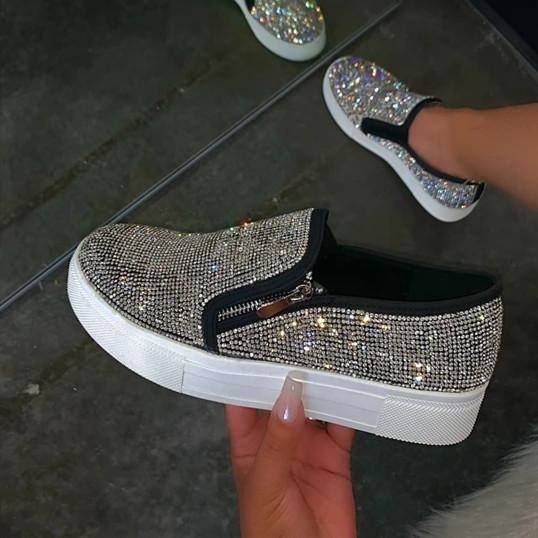 Women Casual Fashion Rhinestone Slip-on Loafers