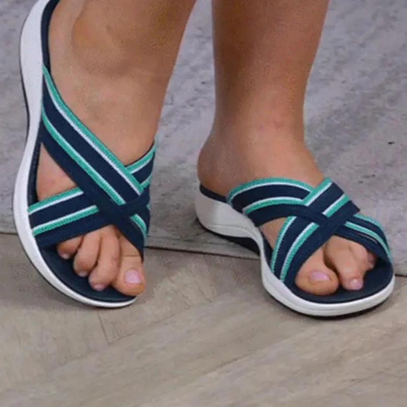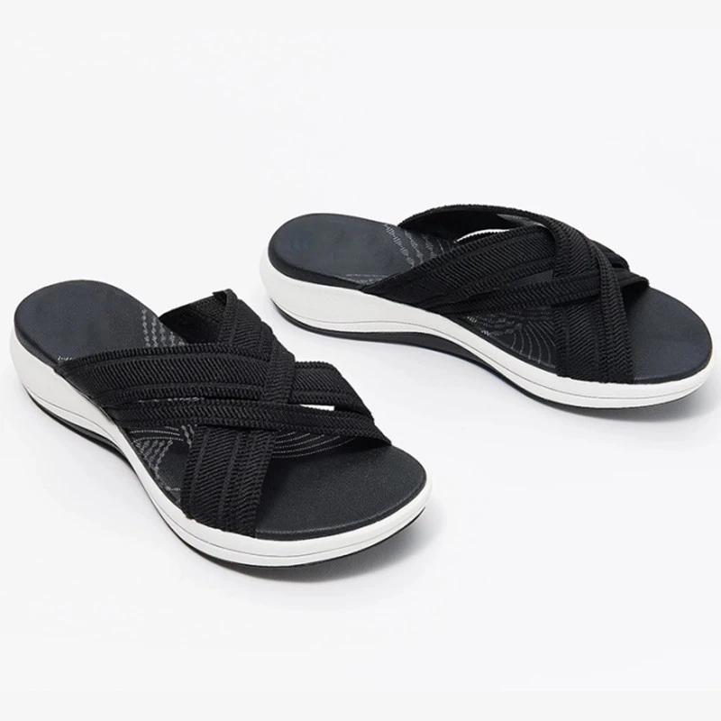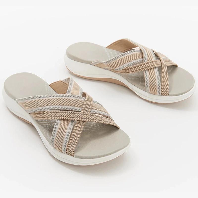 Women Casual Flyknit Fabric Soft Sole Slippers