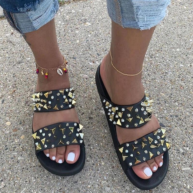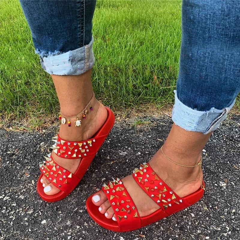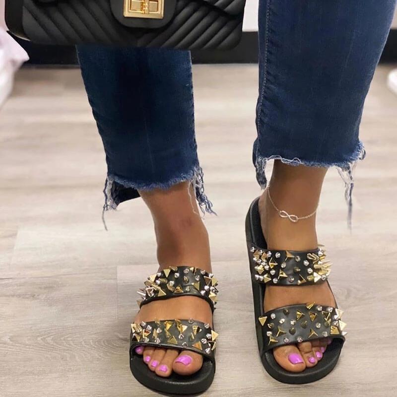 STRIPES LOW HEELS CASUAL SIMPLE SLIPPERS WOMEN