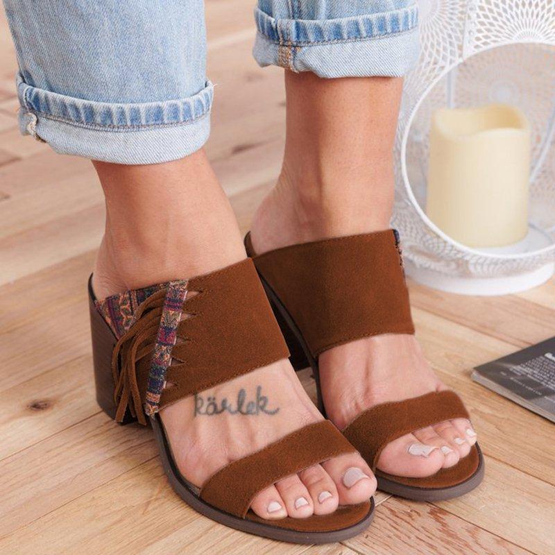 WOMEN CASUAL SUMMER DOUBLE STRAP CHUNKY HEEL SANDALS