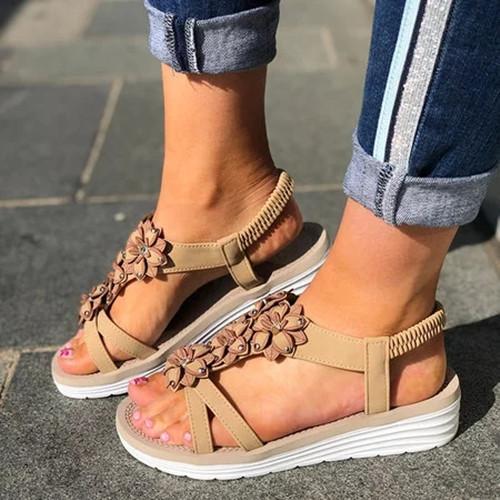 Women Casual Summer Flower Wedge Sandals