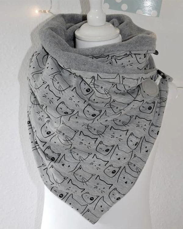 Women Cat Printed Scarf Shawl Multi-purpose Neck Wrap Warm Scarf