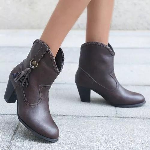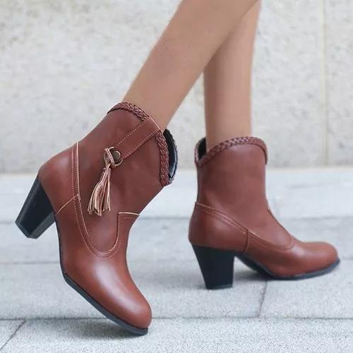 Women Closed Toe Chunky Heel Boots