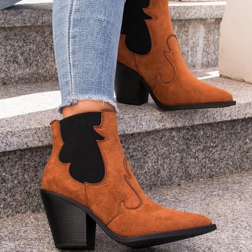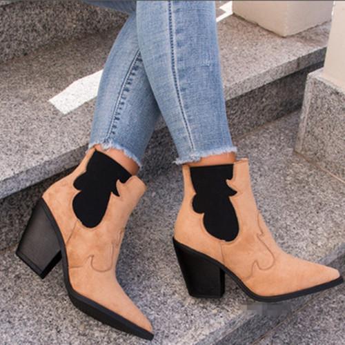 Women Color Block Pointed Toe Boots