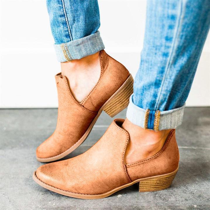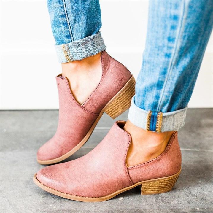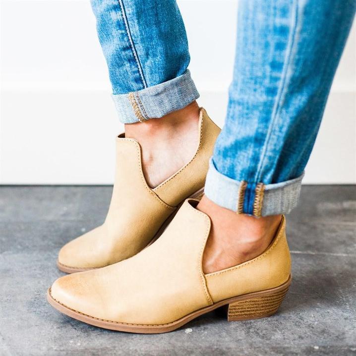 Women Cut Out Ankle Slip-On Booties Low Heel Cute Short Boots