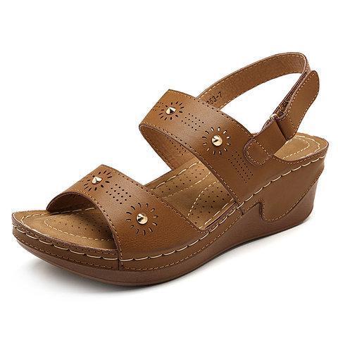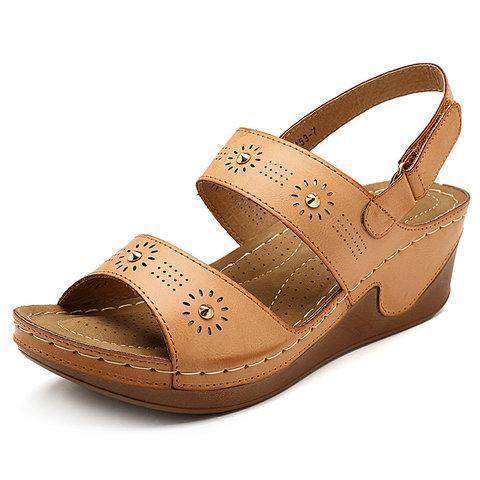 Women Daily Lightweight Hollow Hook Loop Wedges Heel Sandals