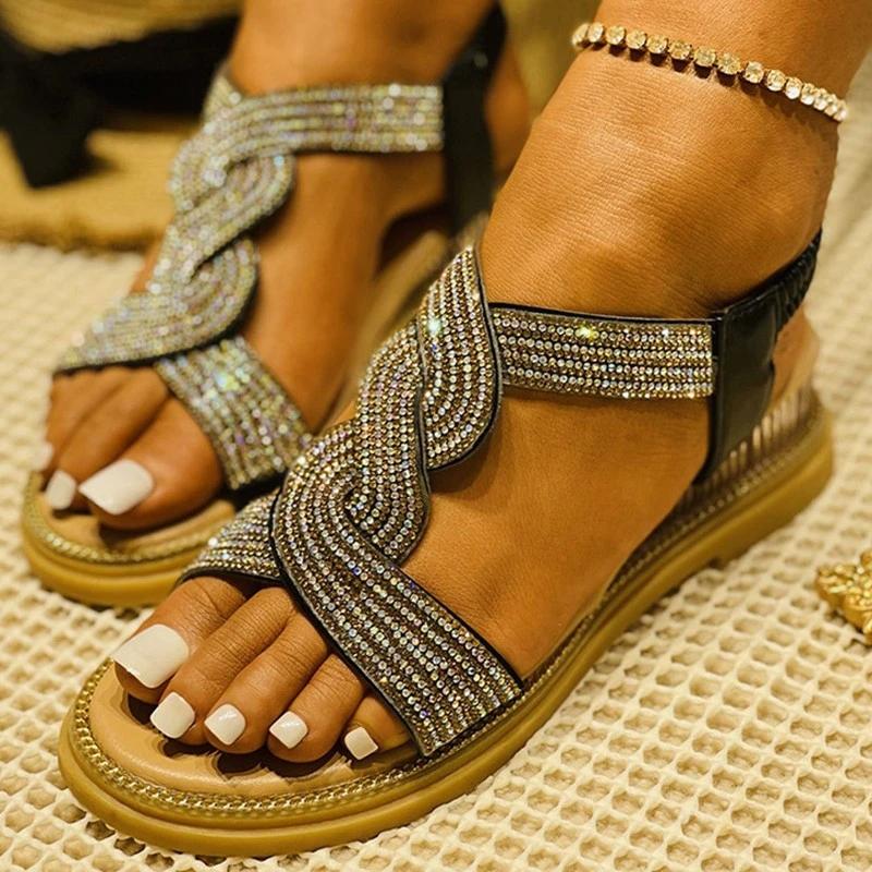 Women Elegant Fashion Pu Cross-strap Elastic Band Wedge Heel Sandals