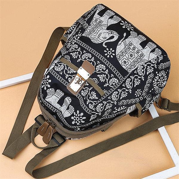 Women Elephant Print Travel Backpack National Shoulder Bag