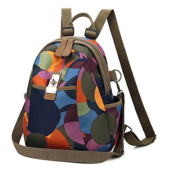 National Style Flower Pattern Nylon Shoulder Bag Backpack