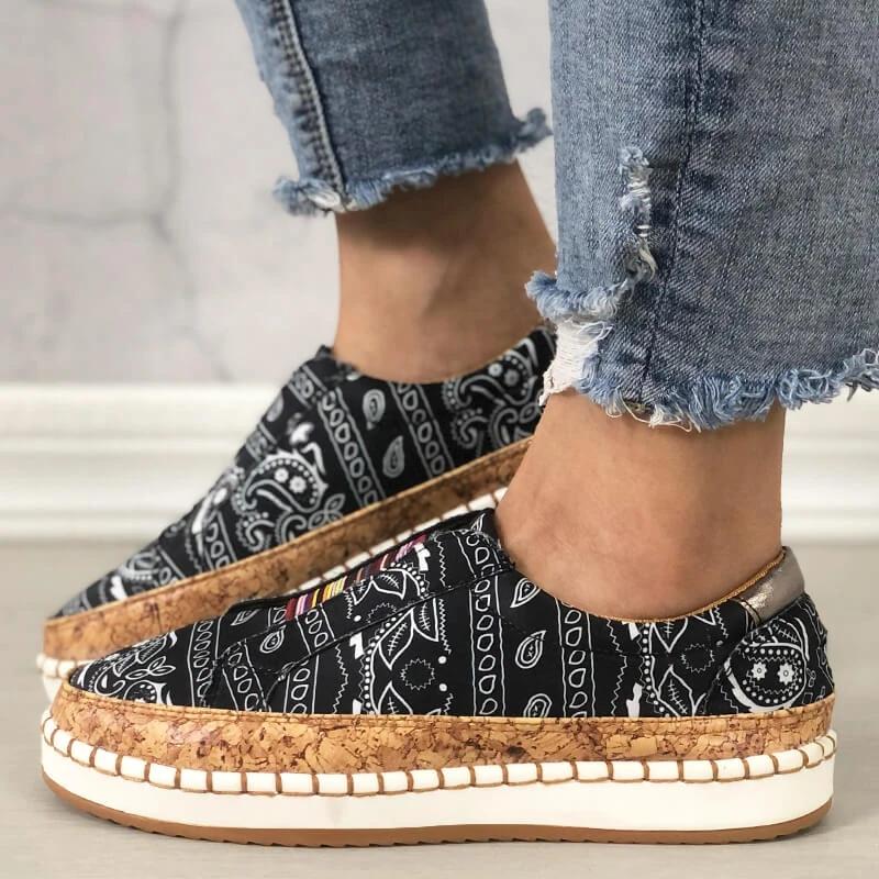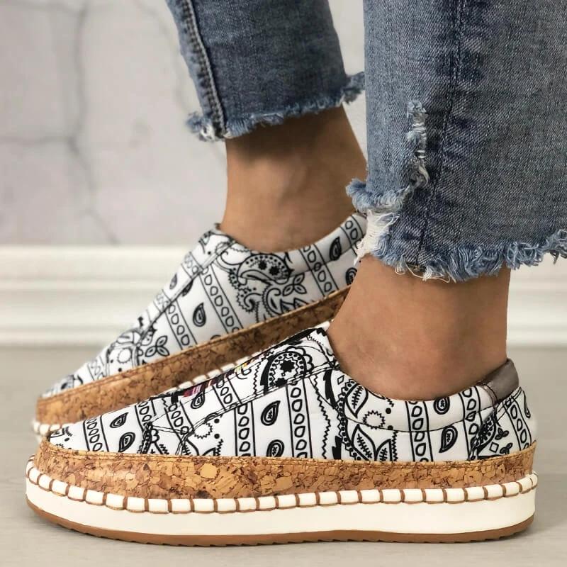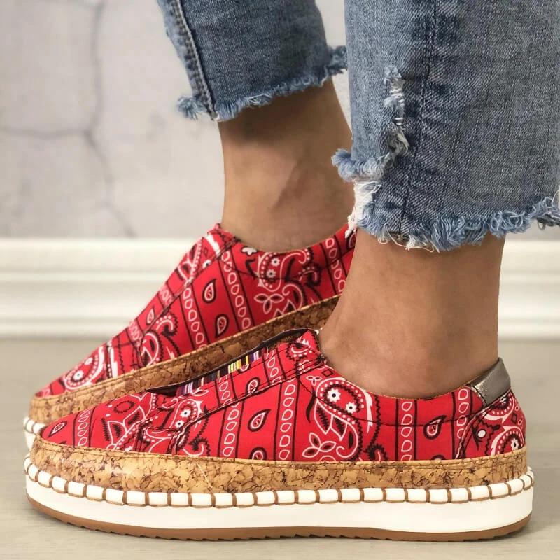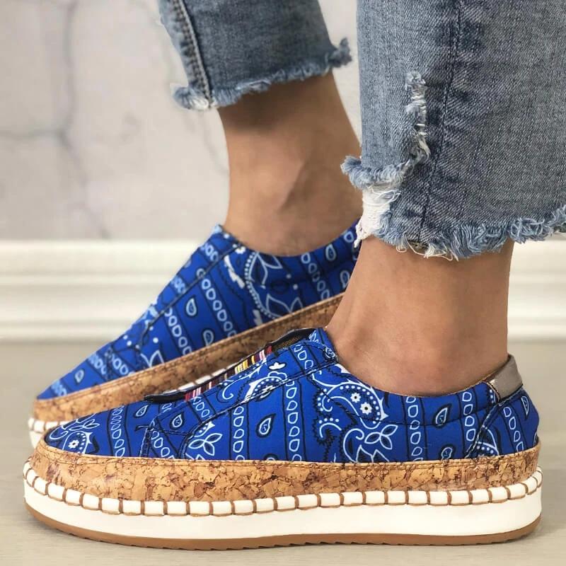 Women Fabric Characteristic Patterns Hit Color Slip On Platform Loafers