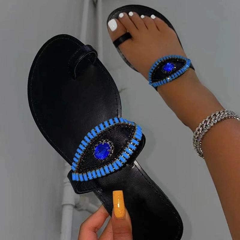 Women Fashion Daily Pu Rhinestone Toe Loop Beach Flat Sandals Slippers