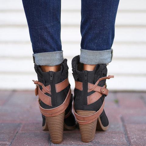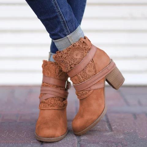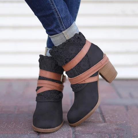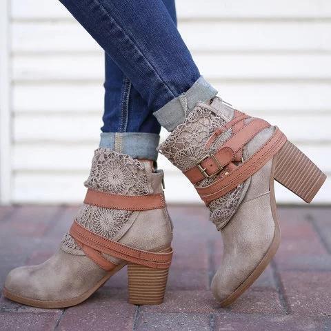 *Women Fashion Lace Ankle Boots Chunky Heel Daily Zipper Booties
