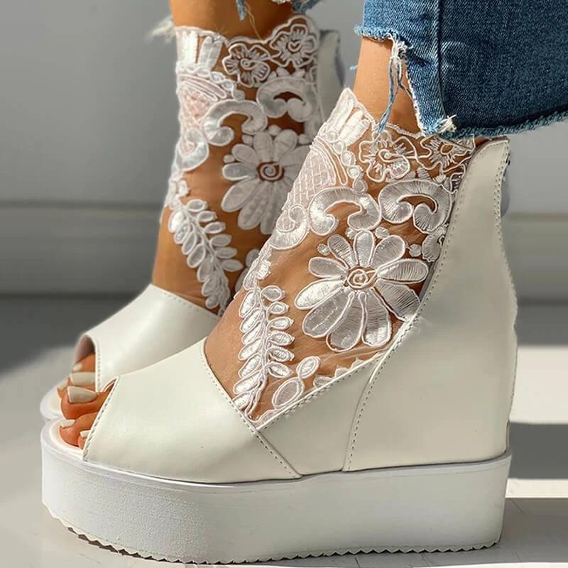 Women Fashion Lace Hollow Out Wedge Sandals