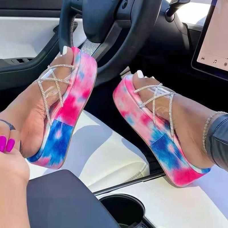 Women Fashion Pu Rhinestone Print Platform Sandals