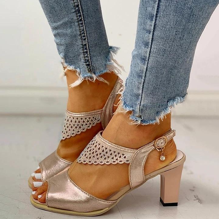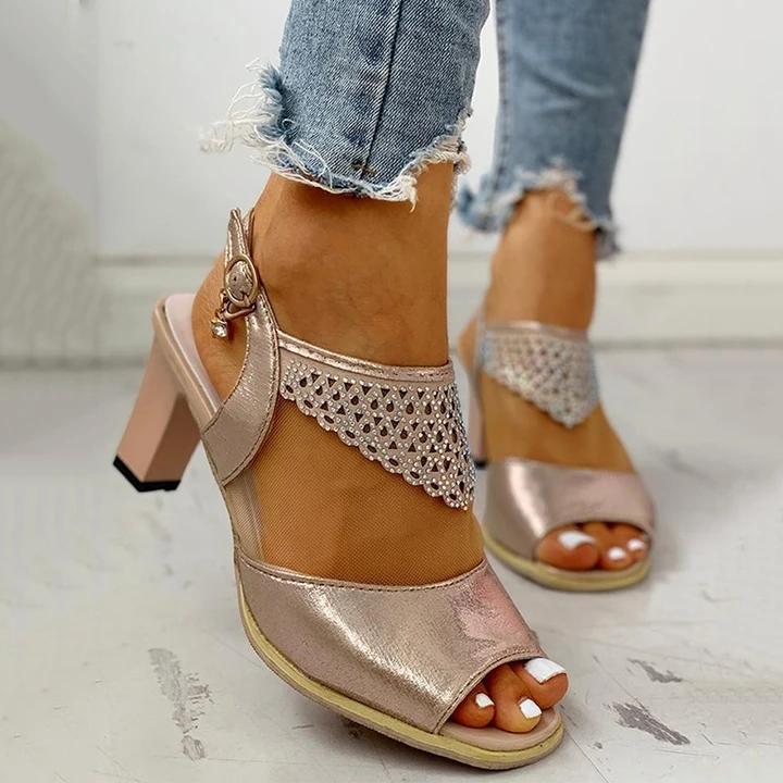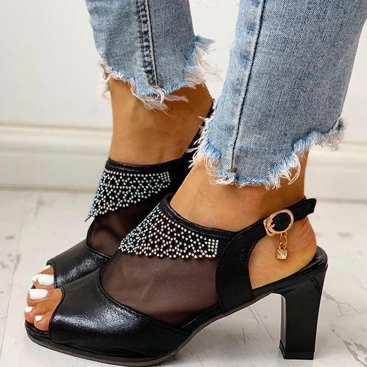 Women Fashion Rhinestone High Heel Buckle Strap Sandals