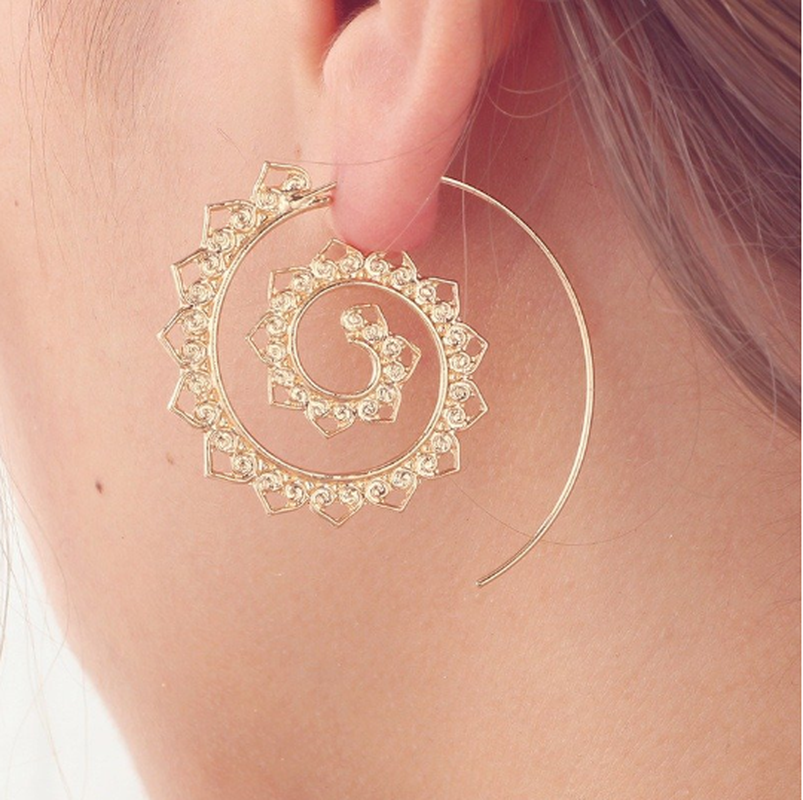 Women Fashion Spiral Earrings Heart-shaped Retro Earrings