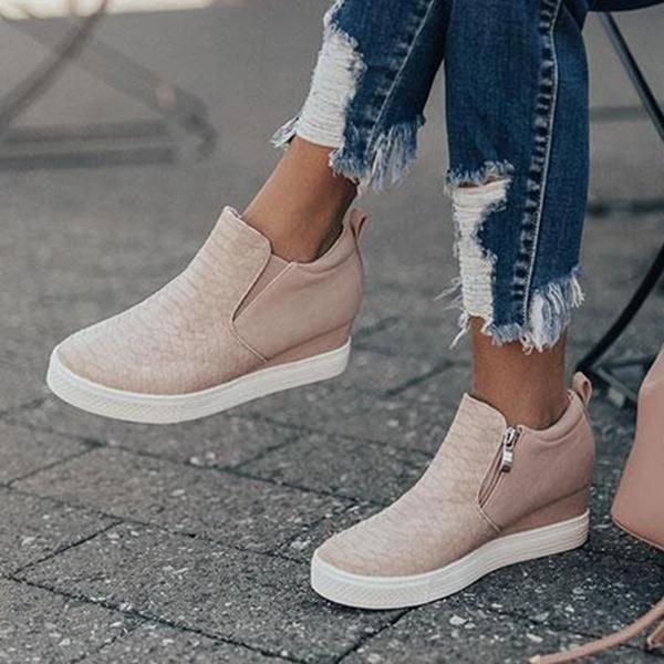 Women Fashion Wedge Sneakers Solid Color Comfortable Shoes