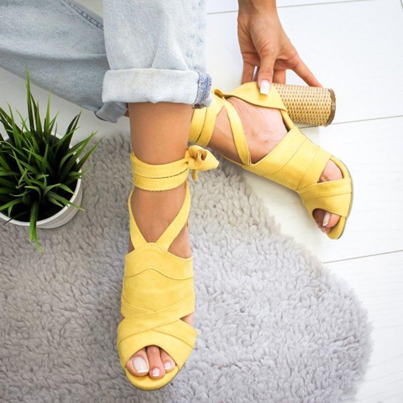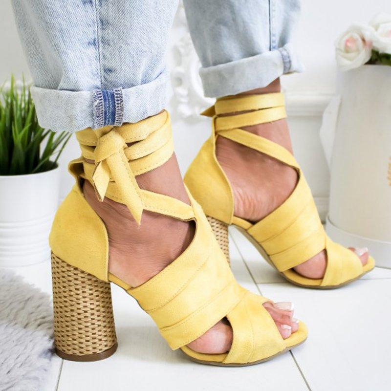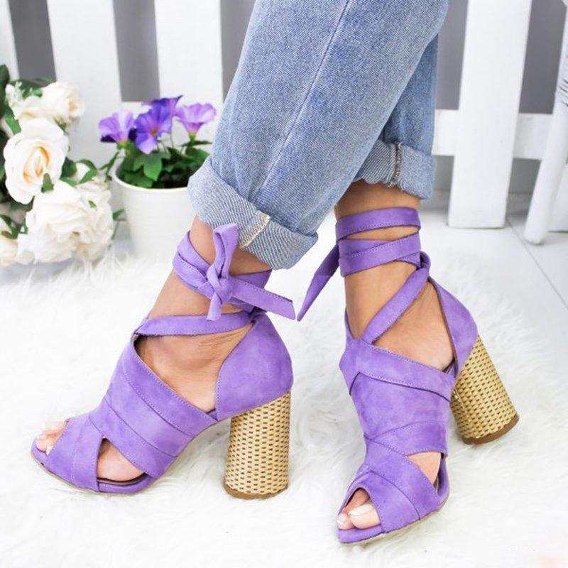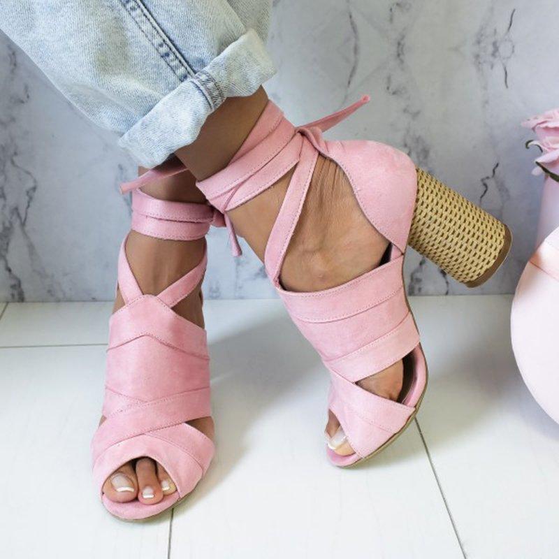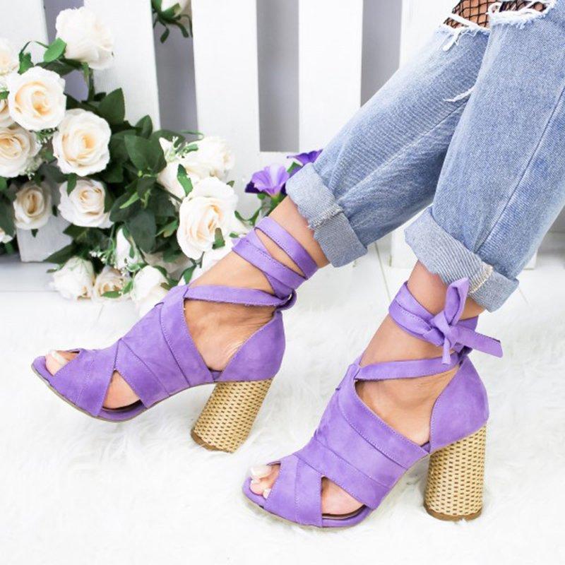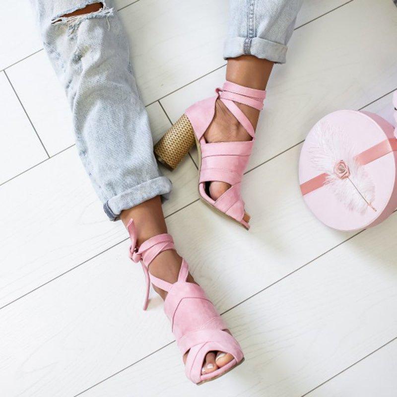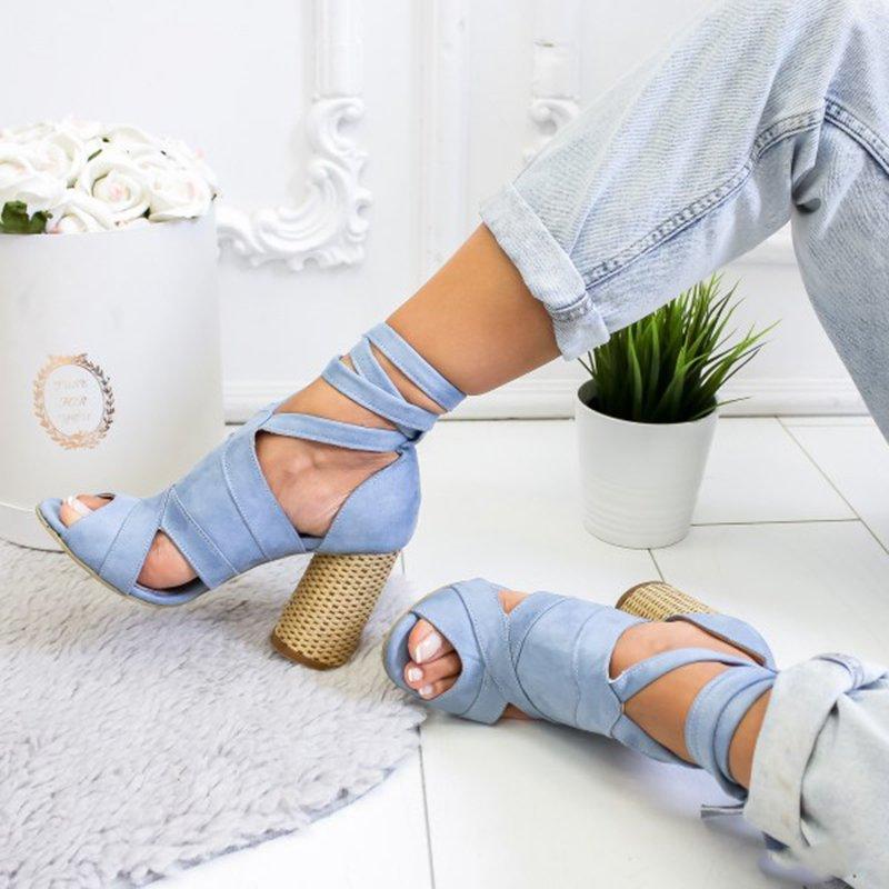 Womens Suede High-heel Buckle Sandals