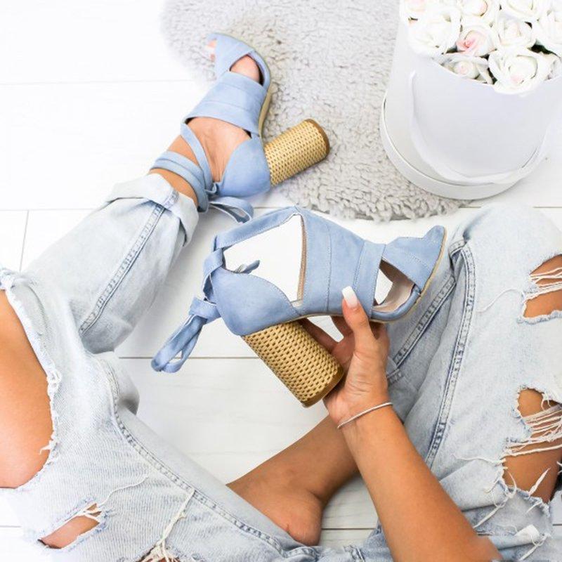 Women Peep Toe Chunky Heel Date Buckle Summer Sandals