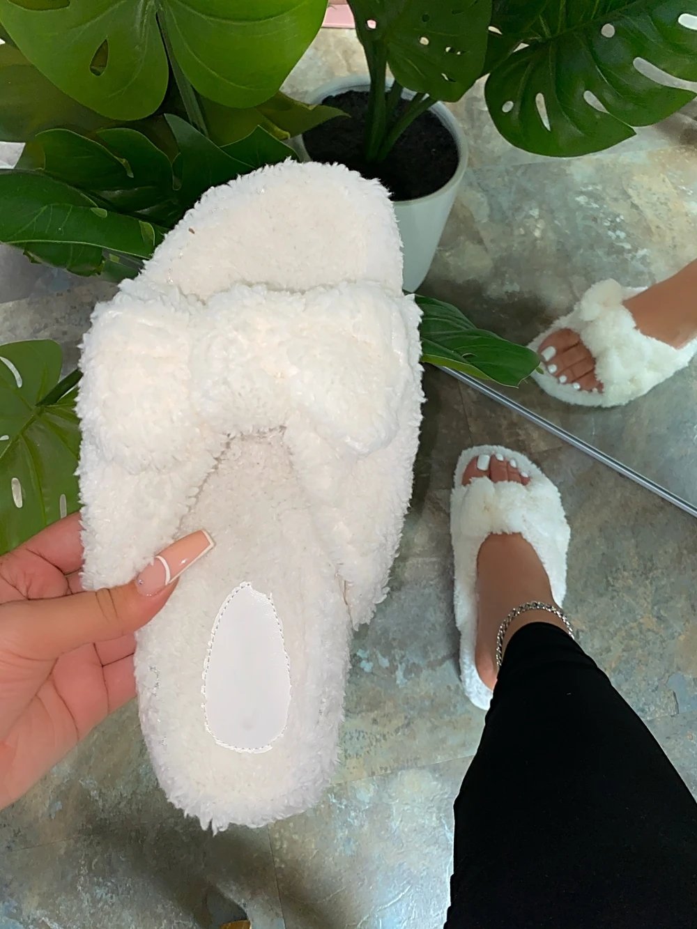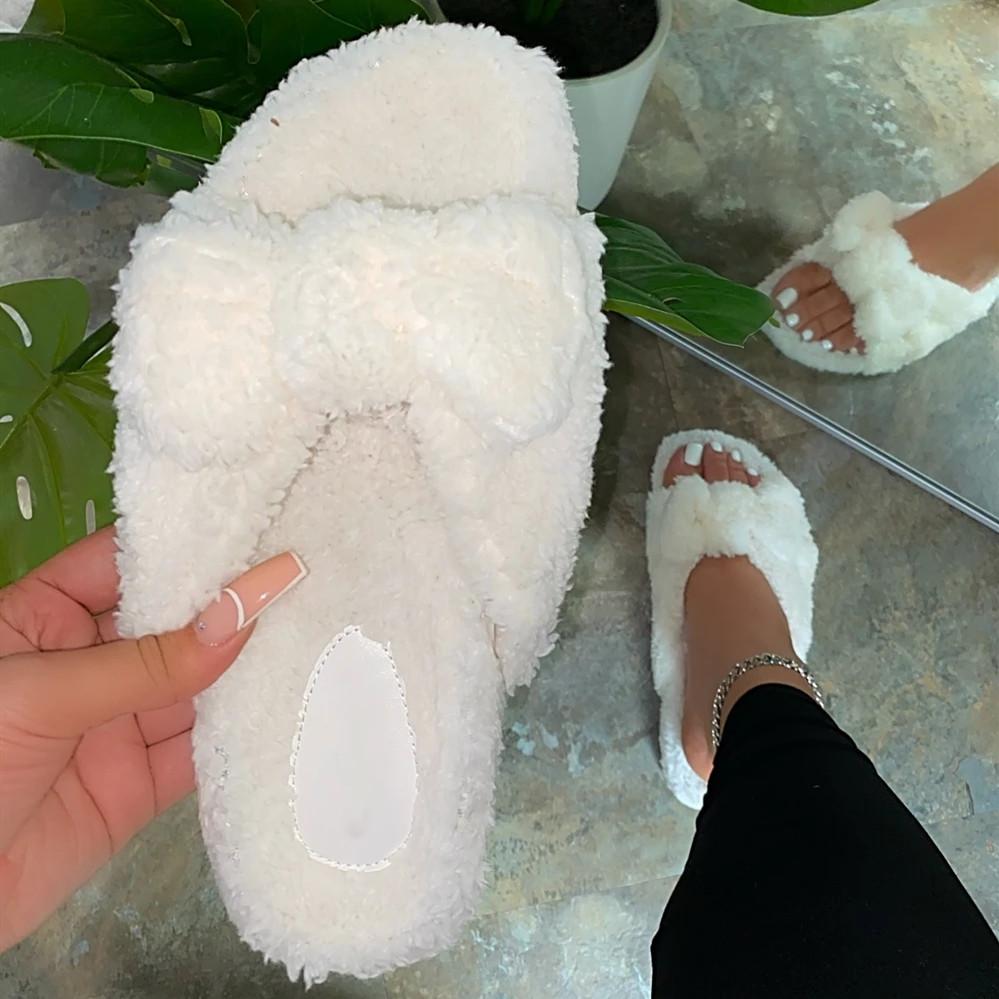 Women Fuzzy Faux Fur Leopard Thongs Slip On Platform Slides Slippers