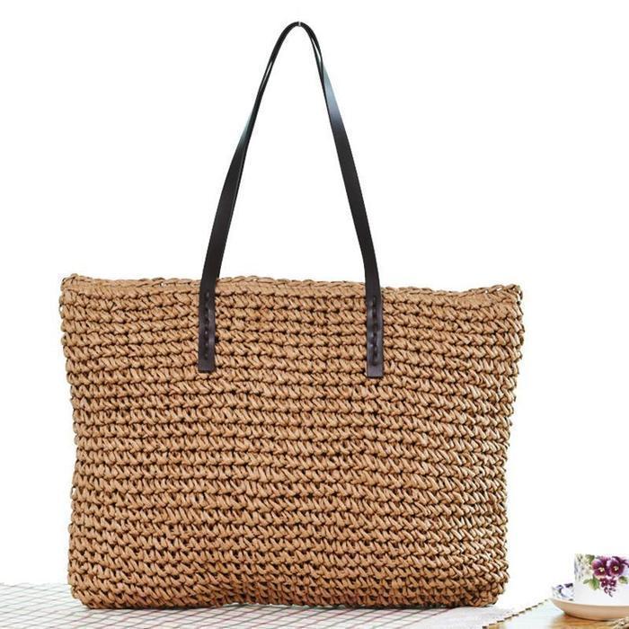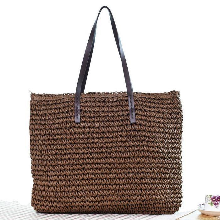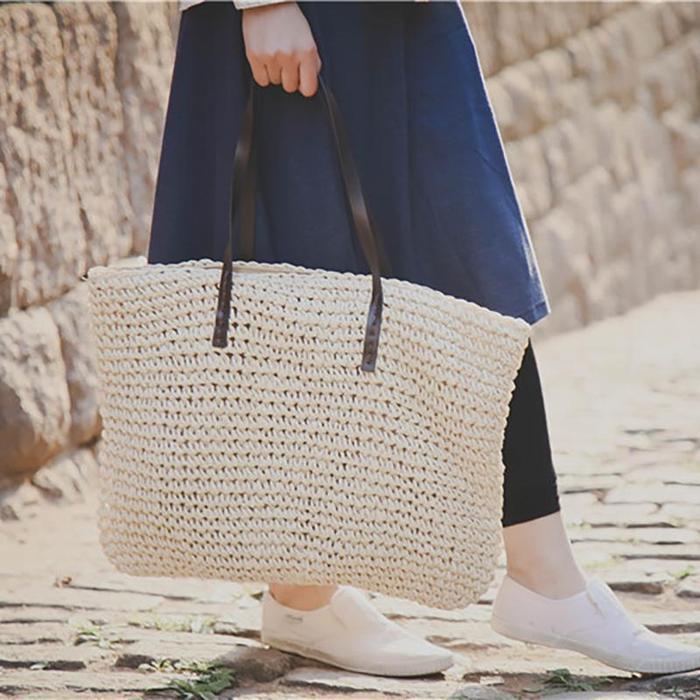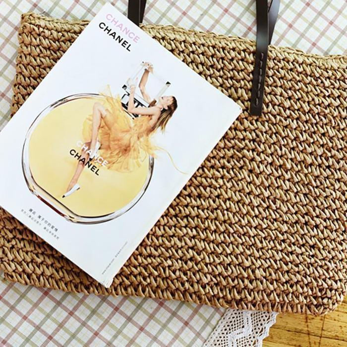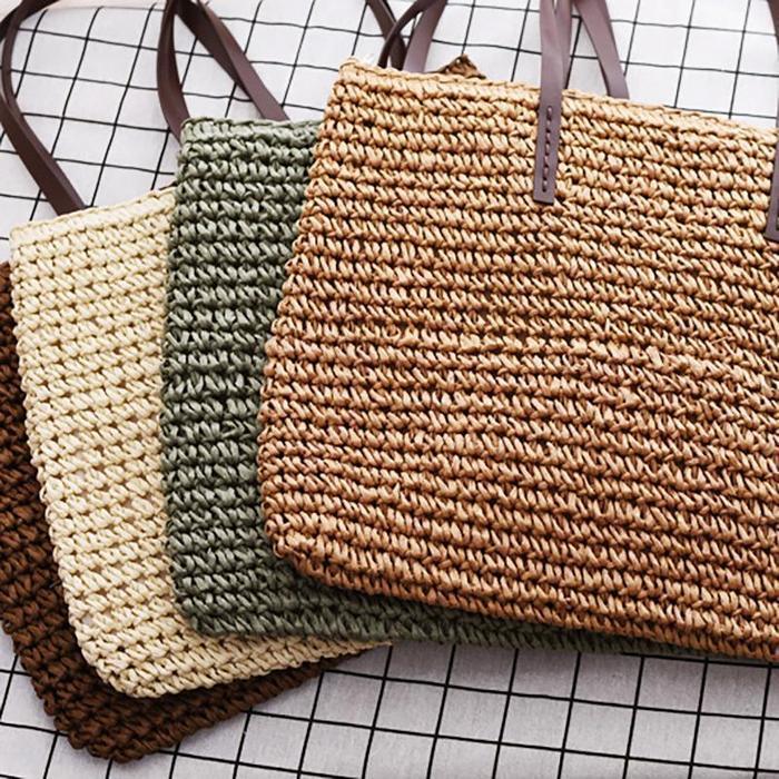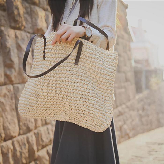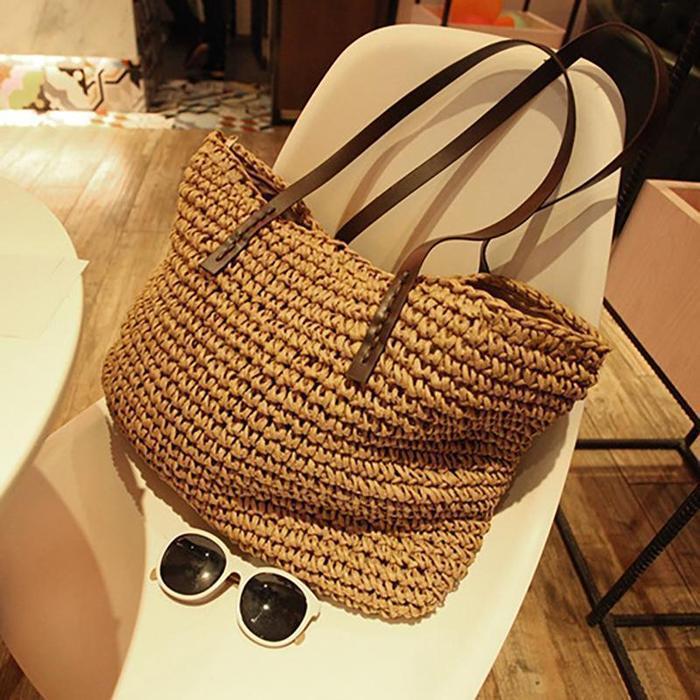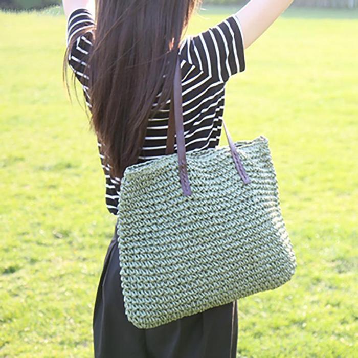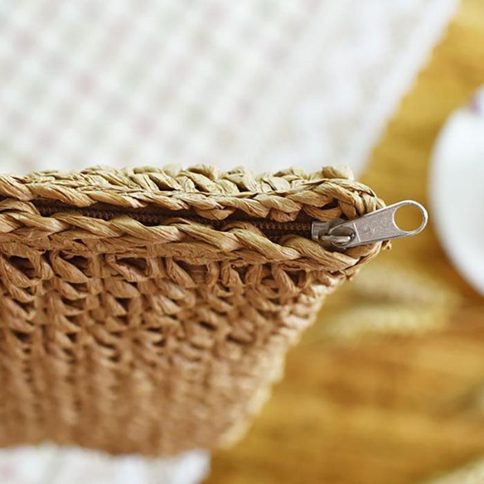 Women Handmade Straw Casual Zipper Shoulder Bags