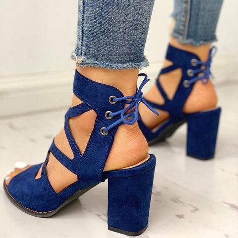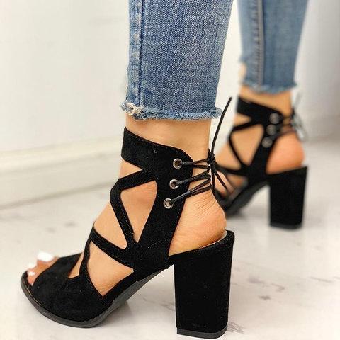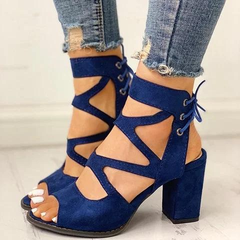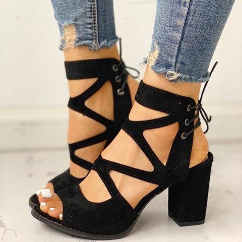 Women Lace-Up Casual Chunky Heel Pu Sandals