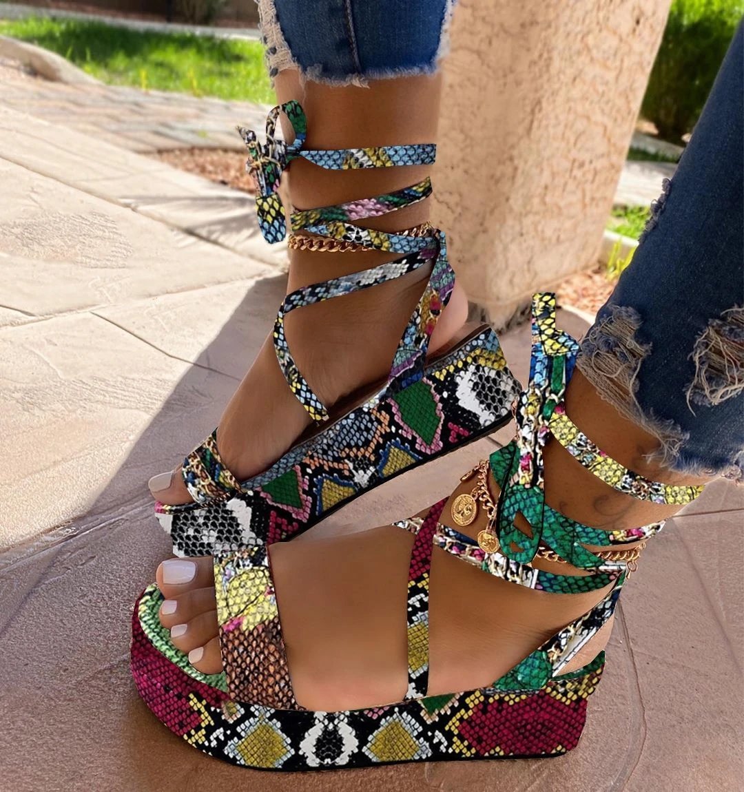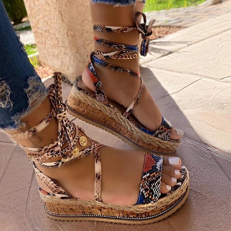 Women Casual Roman Leopard Wedge Sandals