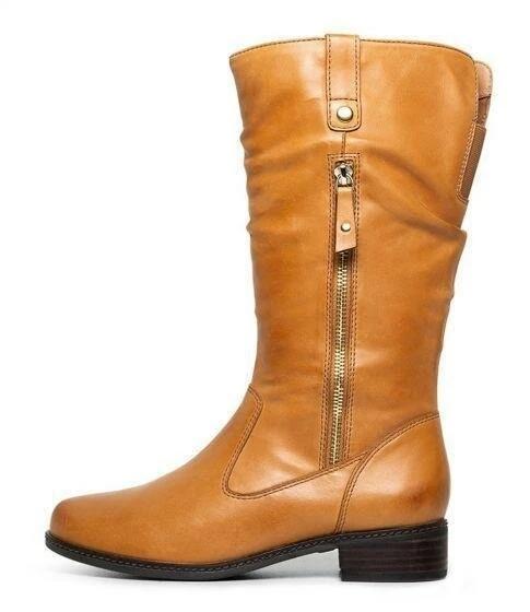 Women Large Size Mid Calf Zipper Chunky Heel Riding Boots