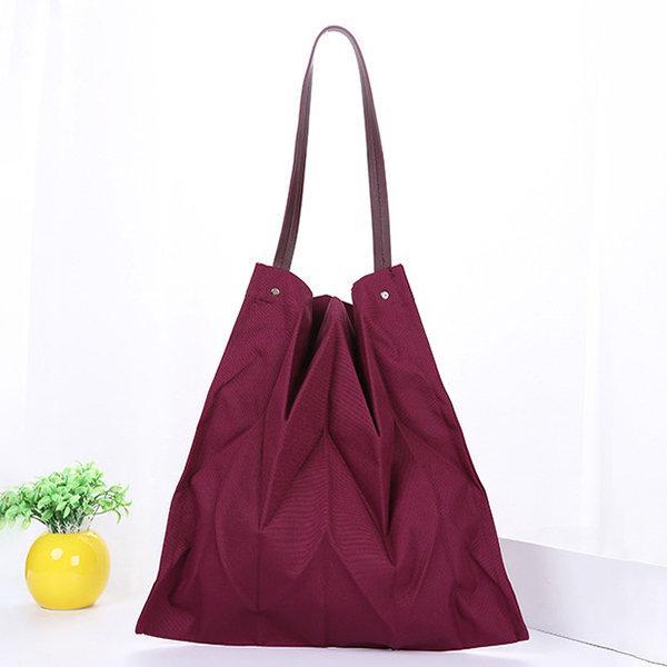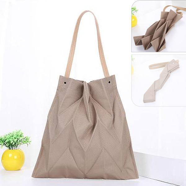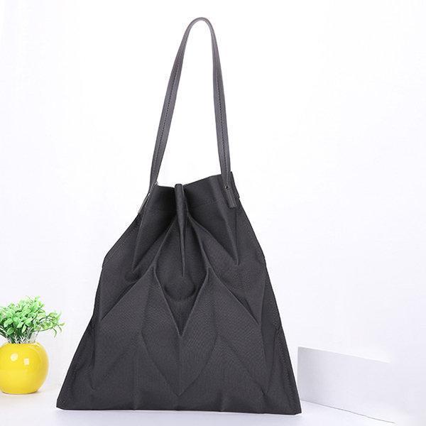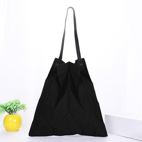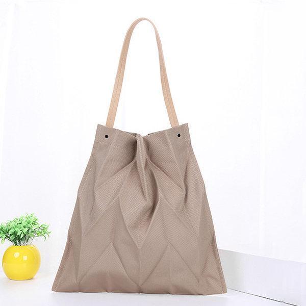Women Organ Fold Canvas Bag Solid Shoulder Bag