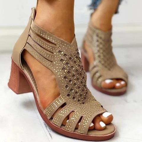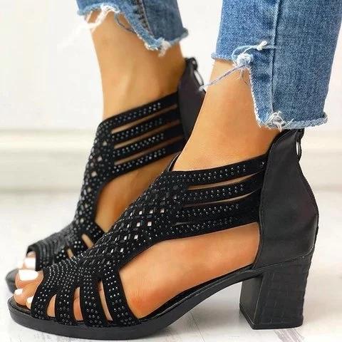 Women Fashion Rhinestone High Heel Buckle Strap Sandals