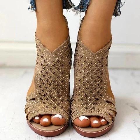 Women Cut-out Slip-on Stylish Mid Heel Sandals Shoes