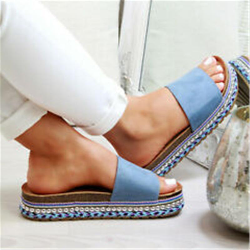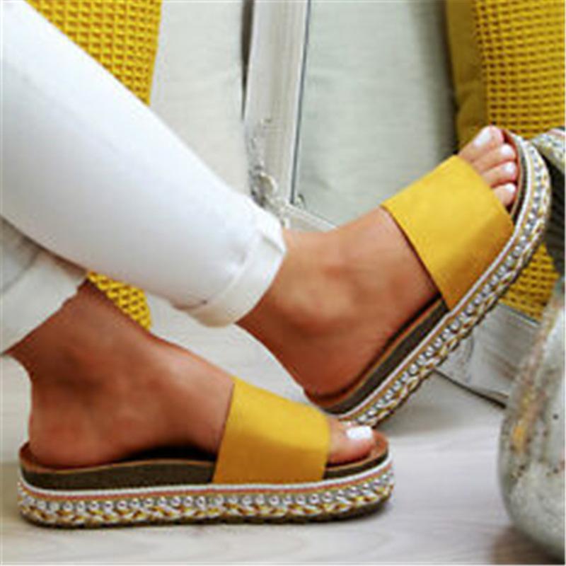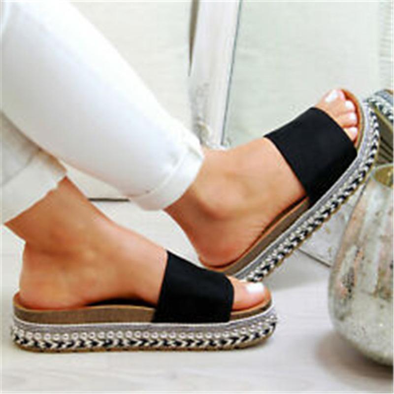 Women Plus Size Peep Toe Platform Sandals Slip-On Sandals