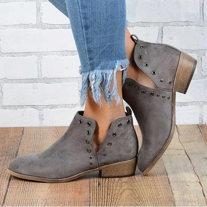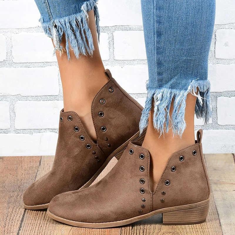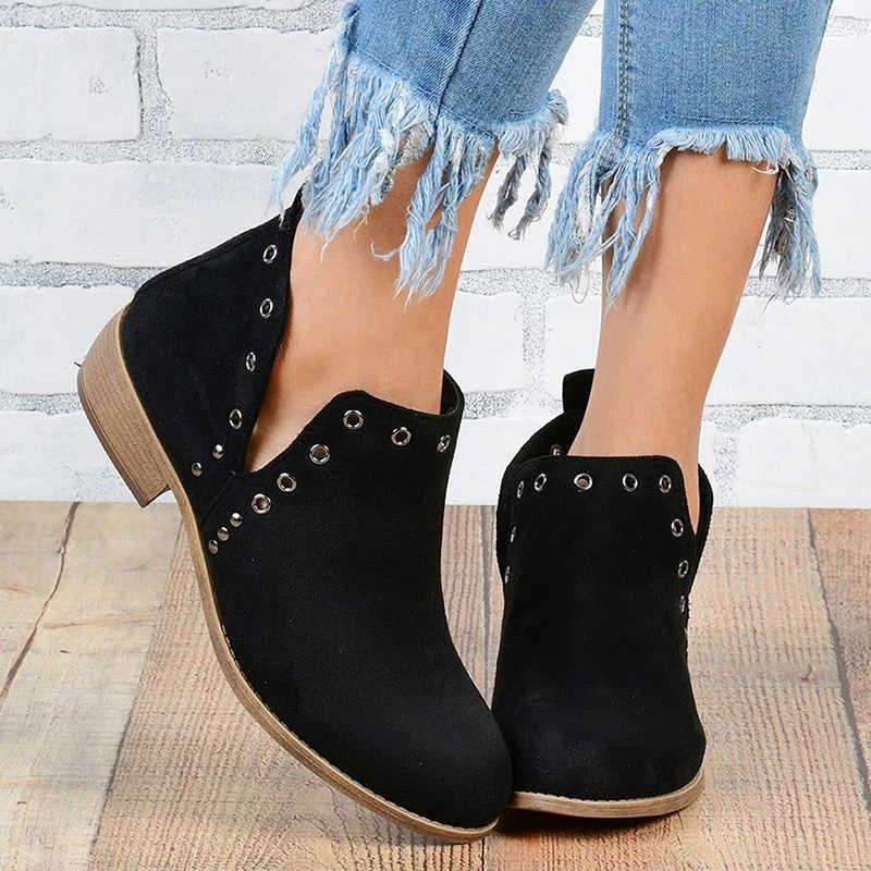 Women Retro Breathabel Metal Decor Slip On Ankle Boots