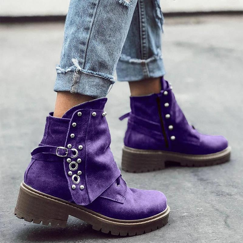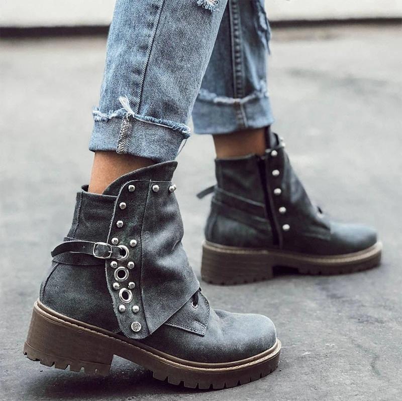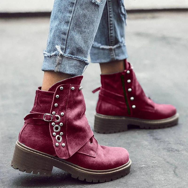 Women Retro Rivet Irregular Design Zipper Chunky Heel Boots