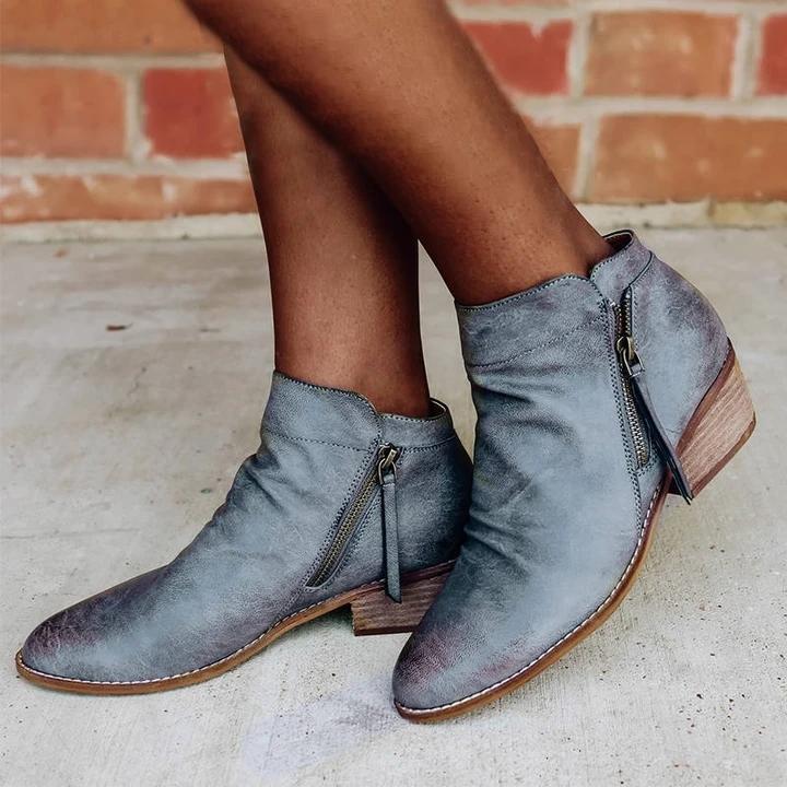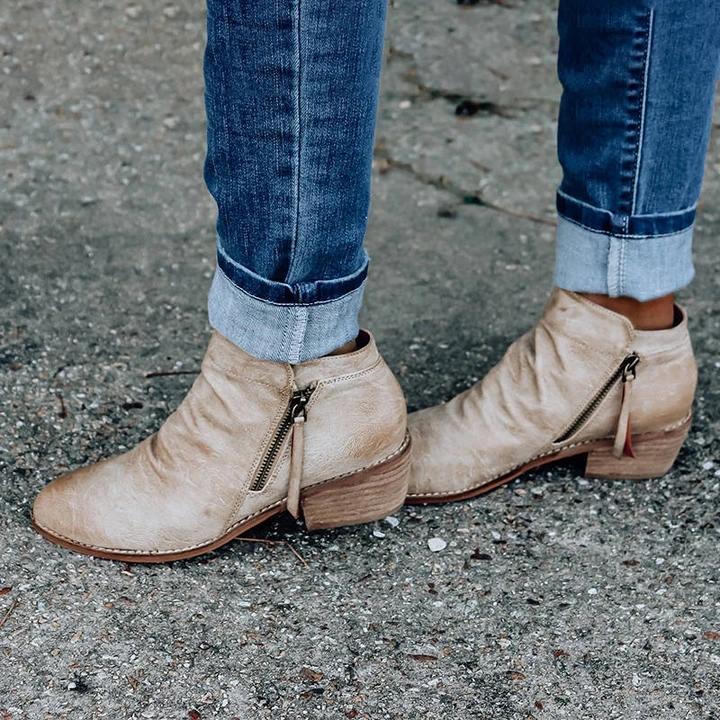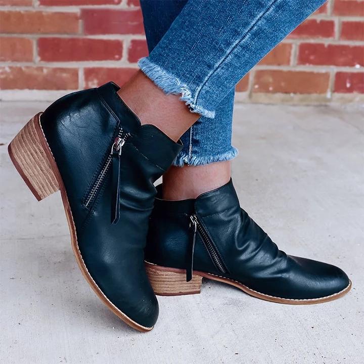 Women Retro Style Zipper Low Heel Boots