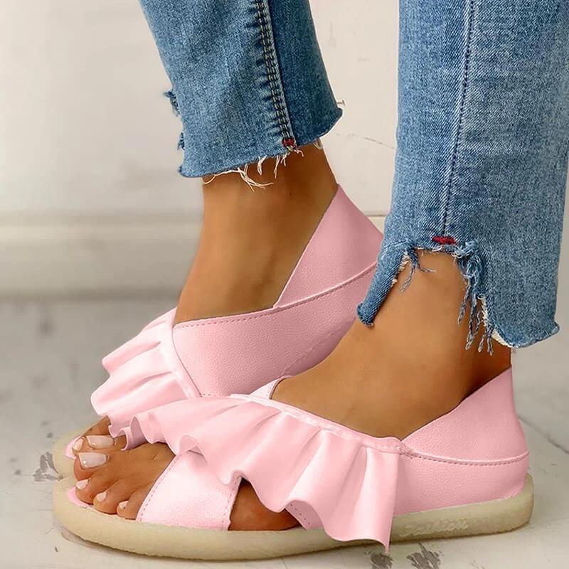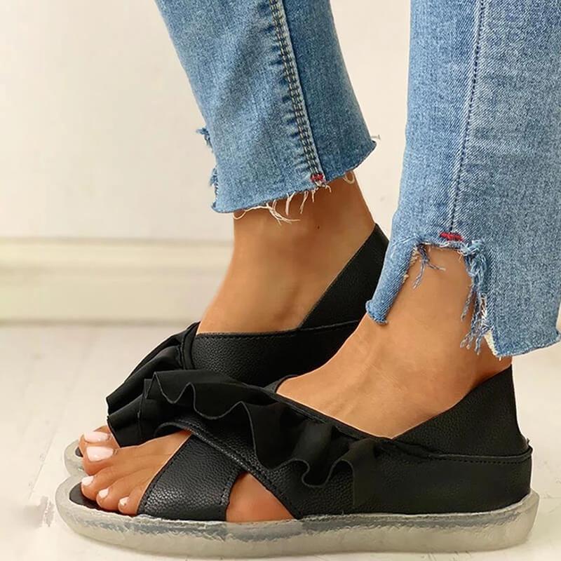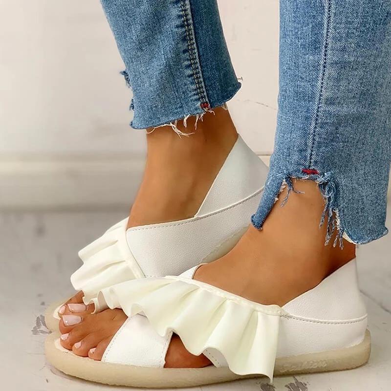 Women Ruffles Cross-strap Comfy Flat Sandals