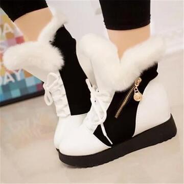 Women’s Cozy Hit Colors Zipper Lace Up Hidden Wedge Heel Cotton Boots